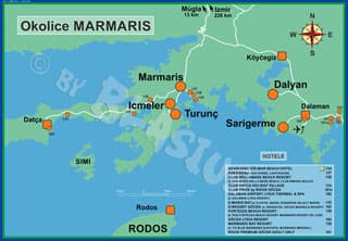 to jeden z najpiękniejszych rejonów nadmorskich Turcji. Górzysty krajobraz komplikuje co prawda komunikację,ale oferuje wspaniałe widoki. Pełno tu urokliwych zatoczek, bezludnych wysepek, a to wszystko otoczone ciepłymi wodami Morza Śródziemnego. Jedną z wielu atrakcji są rejsy gületą, czyli żaglowym jachtem.Poniżej obu mapek znajduje się spis wszystkich hoteli w