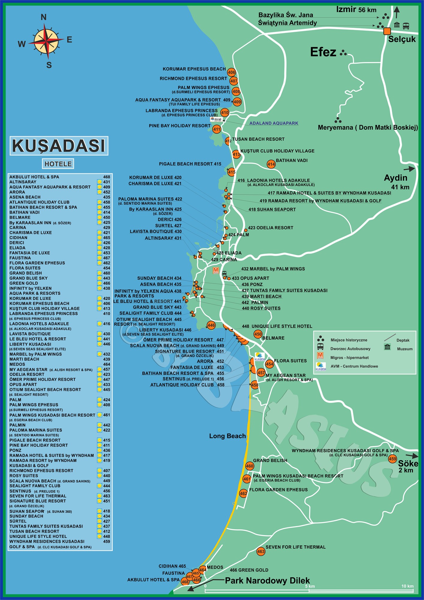 Hotel KORUMAR EPHESUS BEACH Hotel SCALA NUOVA BEACH Hotel WYNDHAM RESIDENCES KUSADASI GOLF & SPA Hotel RICHMOND EPHESUS RESORT Hotel PALM WINGS EPHESUS Hotel LABRANDA EPHESUS PRINCESS Hotel PINE BAY HOLIDAY RESORT Hotel TUSAN BEACH RESORT Hotel KUŞTUR CLUB HOLIDAY VILLAGE Hotel ÖMER PRIME HOLIDAY RESORT Hotel ARORA Hotel SIGNATURE BLUE RESORT Hotel FANTASIA DE LUXE Hotel BATIHAN BEACH RESORT & SPA Hotel SENTINUS Hotel ATLANTIQUE HOLIDAY CLUB Hotel LIBERTY KUSADASI Hotel FLORA GARDEN EPHESUS Link do mapy Centrum Kusadasi ADALAND AQUAPARK Hotel FAUSTINA Hotel AKBULUT HOTEL & SPA Hotel GRAND BELISH Hotel MY AEGEAN STAR Hotel PALM WINGS KUSADASI BEACH RESORT Hotel BELMARE Hotel MEDOS Hotel AQUA FANTASY AQUAPARK & RESORT Hotel UNIQUE LIFE STYLE Hotel FLORA SUITES Hotel BATIHAN VADI Hotel PIGALE BEACH RESORT Hotel SEVEN FOR LIFE THERMAL Hotel CIDIHAN Hotel GREEN GOLD